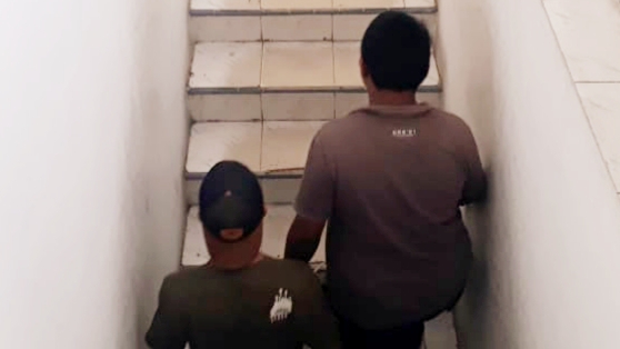 MUD dan rekannya saat digiring ke ruangan Reskrim Polres Asahan. |