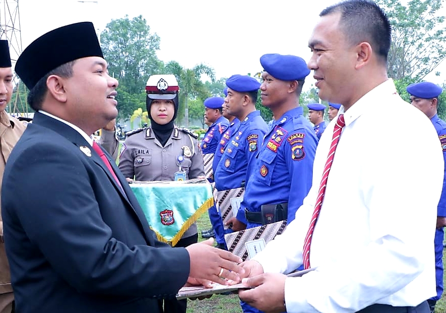 Penghargaan yang diberikan Walikota Tanjungbalai H M Syahrial SH MH didampingi Kapolres Tanjungbalai AKBP Irfan Rifai, SH, SIK pada upacara peringatan Hari Kesadaran Nasional di halaman Kantor Walikota Tanjungbalai, Kamis (17/1).
