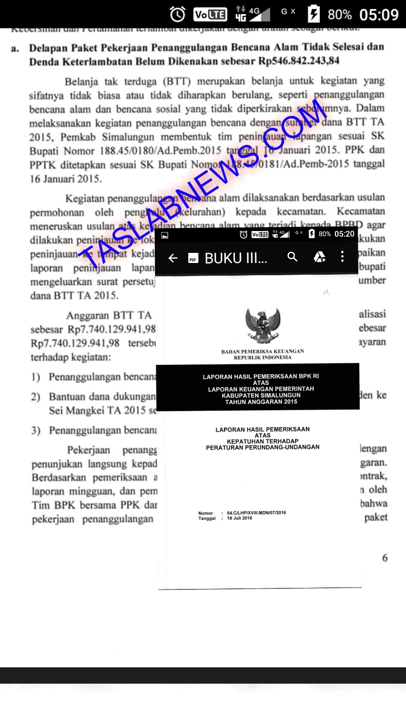 TASLABNEWS, SIMALUNGUN-Tahun 2015 Pemkab Simalungun mengucurkan anggaran Rp32 miliar lebih untuk mengerjakan 15 paket proyek penanggulangan bencana alam. Ternyata dari 15 paket proyek itu 8 paket proyek belum selesai dikerjakan dengan nilai Rp23 miliar lebih.