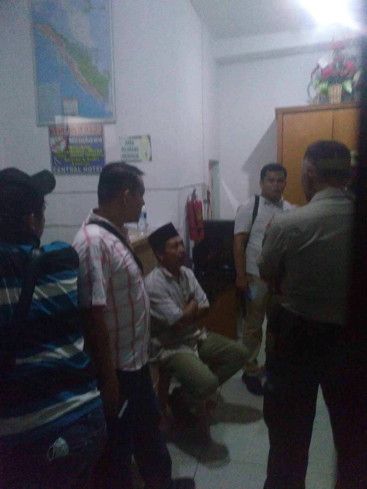 Ngatemin yang datang ke hotel Central dengan menggunakan baju kemeja warna putih dan memakai peci langsung digiring personel Polres Asahan ke kantin hotel untuk di mintai keteranganya.