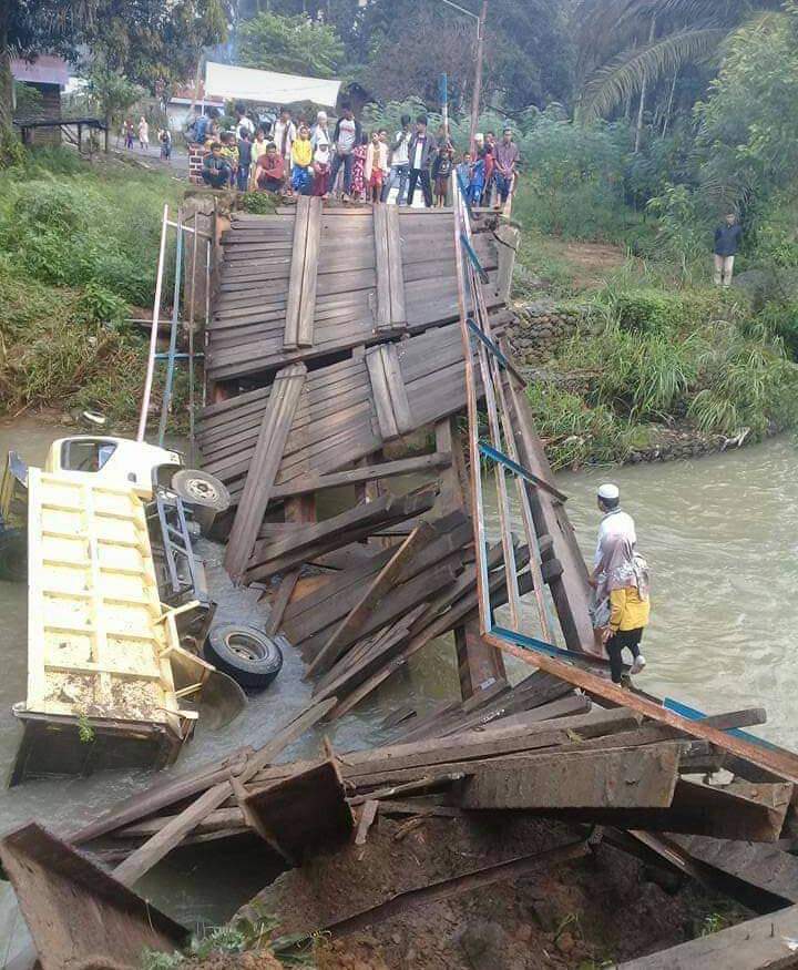 Ambruknya jembatan ini mengakibatkan 1 unit truk Colt Diesel dengan nomor Polisi BA 8515 PU turut terjun ke sungai, namun tidak ada korban jiwa.
