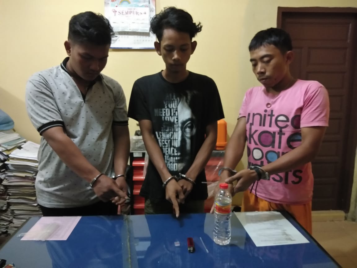 diringkus personel Sat Reskrim Polsek Bandar Pulau, Senin (21/1/2019) sekira pukul 22.30 Wib. Ketiganya ditangkap saat hendak menghisap sabu.