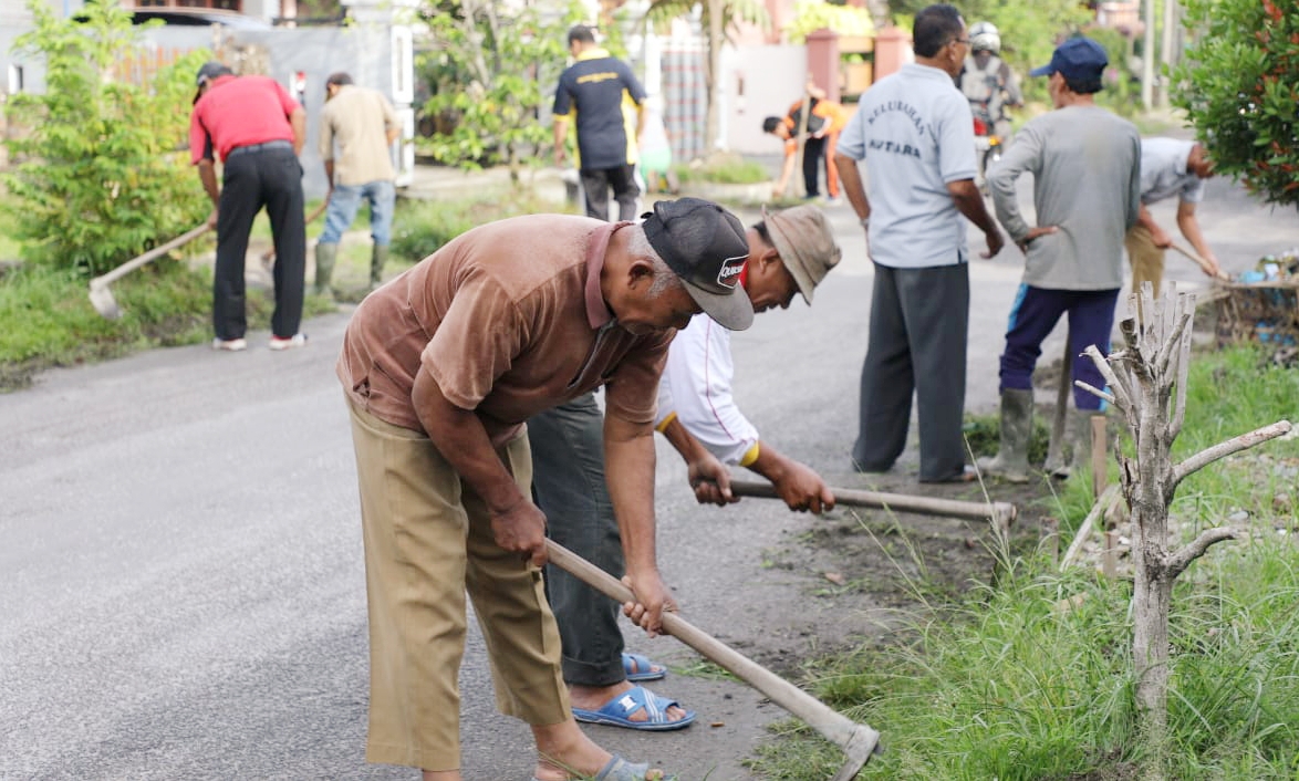 Kegiatan gotong royong di Kecamatan Kisaran Timur Kota Kisaran, Asahan. |