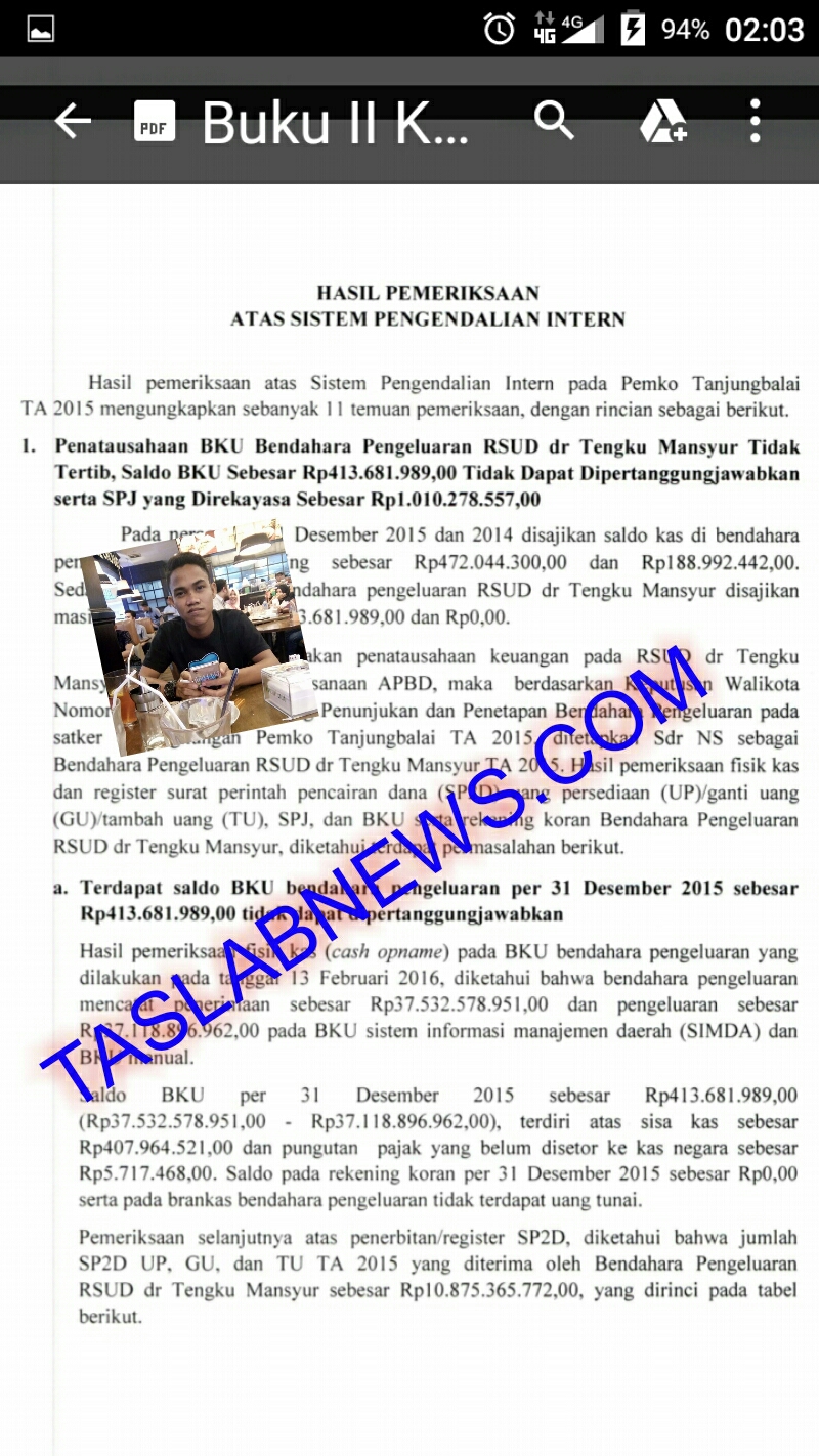 Hasil temuan BPK atas keuangan Pemko Tanjungbalai