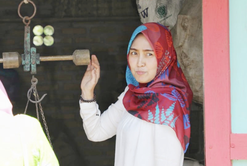 Ketua TP PKK Asahan, Hj Winda Fitrika melihat langsung proses pengelolaan bank sampahdi Desa Buntu Pane. |