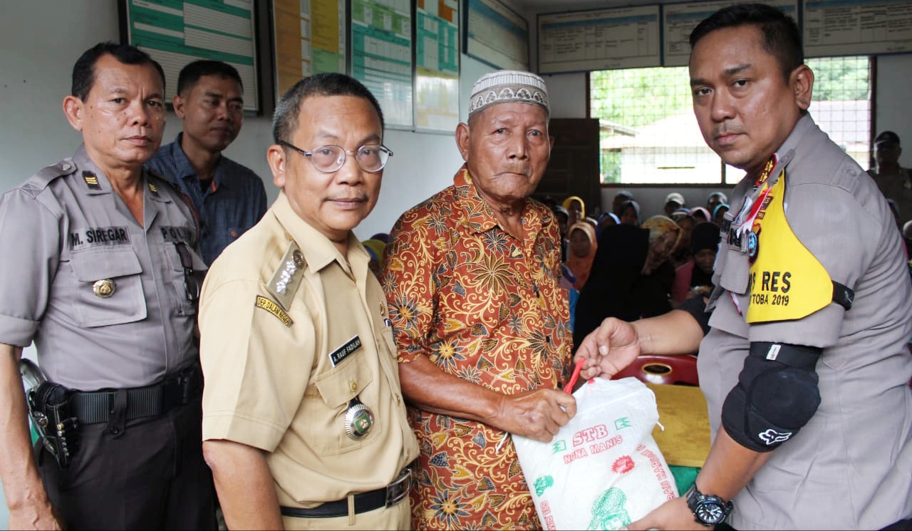| Kapolres Asahan membagikan sembako kepada warga Desa Pulau Pule, Asahan. |