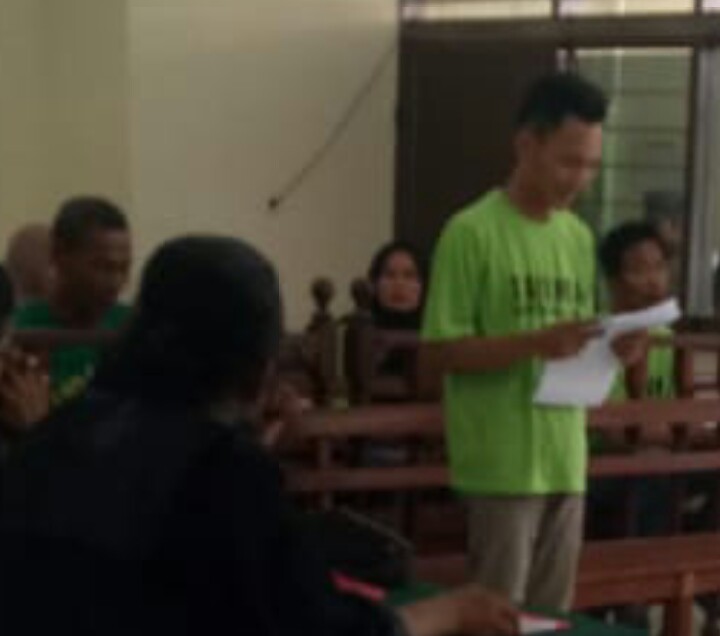Dalam isi Pledoinya, terdakwa sangat menyesali perbuatannya yang selama ini telah kecanduan terhadap narkoba sejak duduk di bangku SMA sampai menjadi mahasiswa semester VII saat ini.