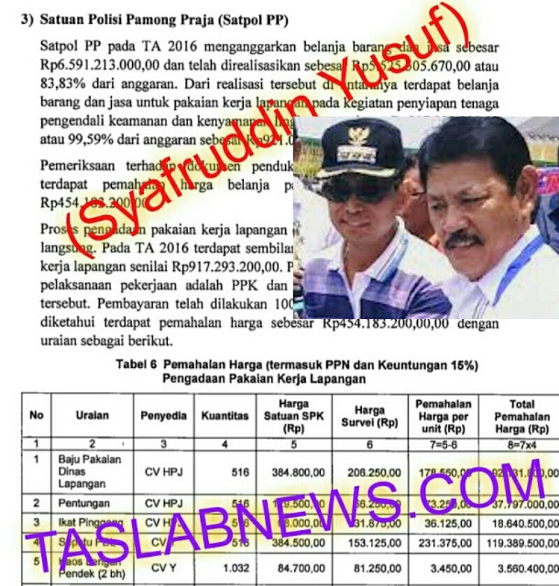 Itu sesuai audit Badan Pemeriksa Keuangan (BPK) RI cabang Sumatera Utara nomor: 58.C/LHP/XVIII.MDN/06/2017 tanggal 14 Juni 2017 ada indikasi Mark up anggaran di Satpol PP sebesar Rp454.183.200.