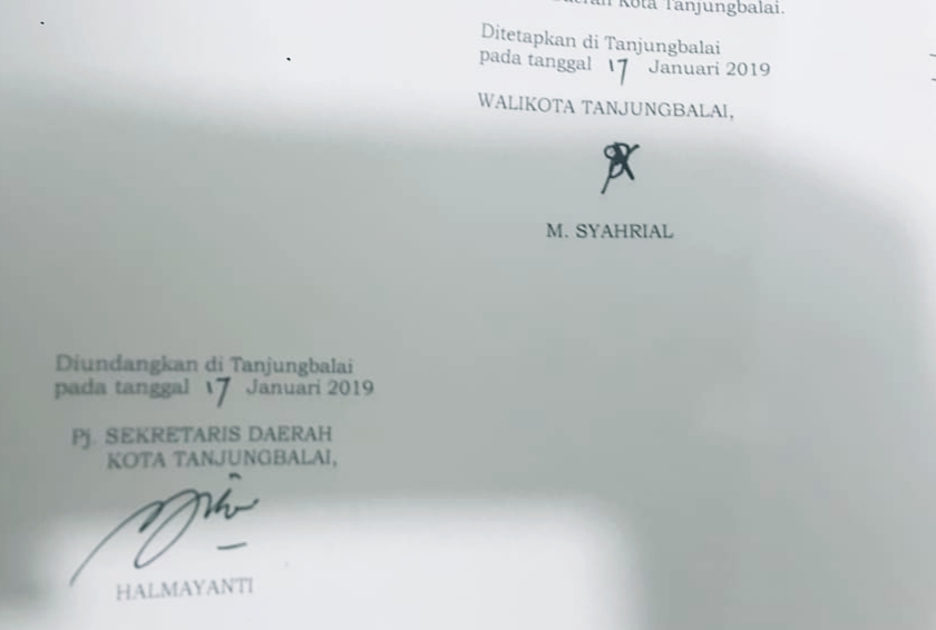 | Salinan/copy Peraturan Walikota (Perwa) Tanjungbalai Nomor : 06 Tahun 2019 tertanggal 17 Januari 2019. |