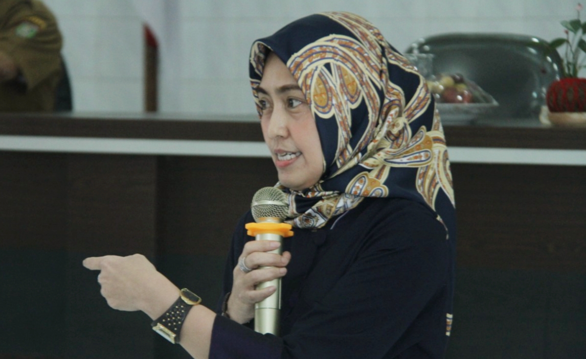 Hj Winda Fitrika sampaikan materinya pada kegiatan Sosialisasi Perumahan Asri di Lingkungan Pemkab Asahan. |