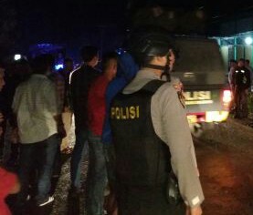 Pihak kepolisian berjaga di lokasi bentrokan. |