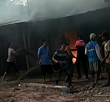 Rumah milik Aho (37), Senin (18/02/2019) terbakar.