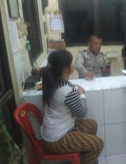 Korban penganiayaan dan pencabulan saat membuat laporan ke kantor polisi. |