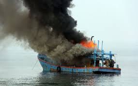 Ilustrasi kapal terbakar. |