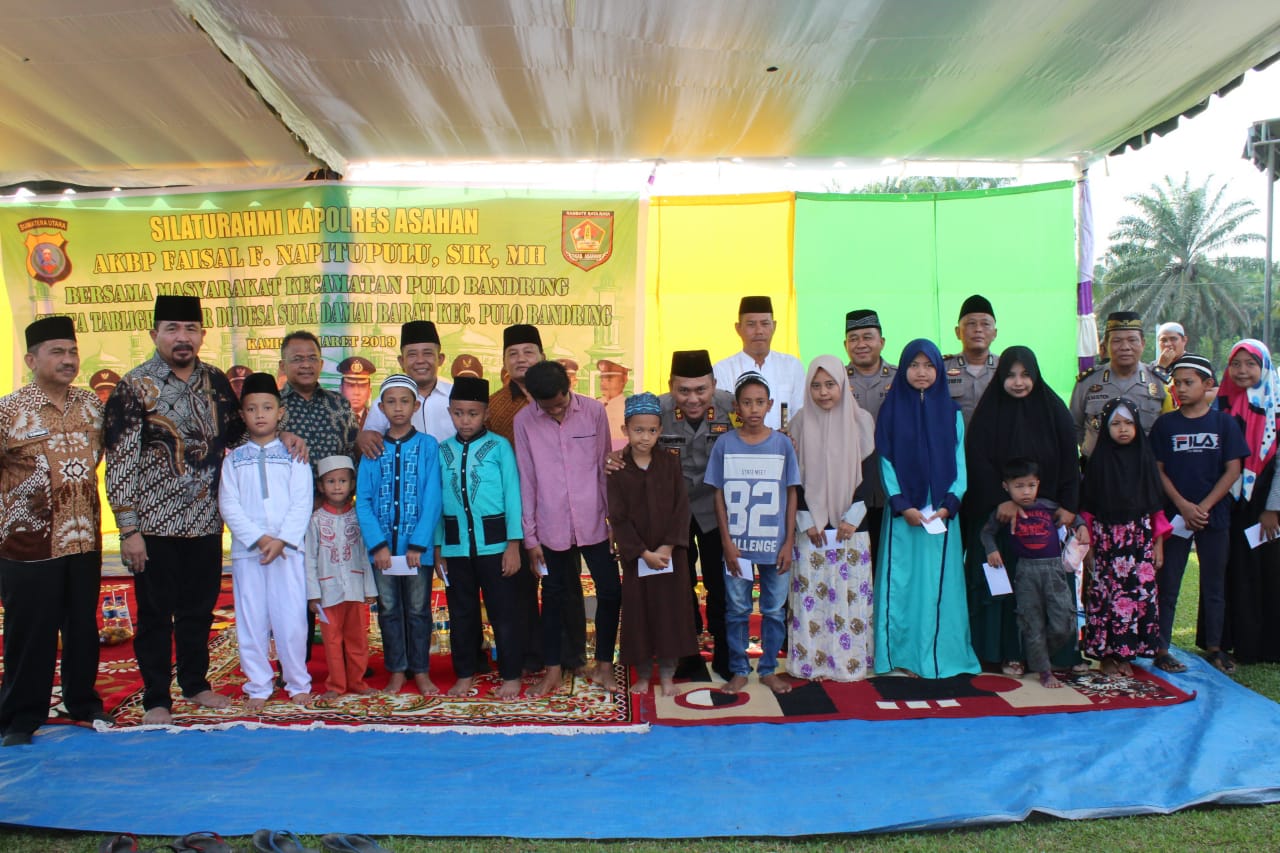 Dalam acara silaturahmi tersebut, Kapolres Asahan juga membagikan tali asih kepada anak-anak yatim, pemberian sembako kepada kaum duafa serta membagikan 500 jilbab buat kaum ibu.