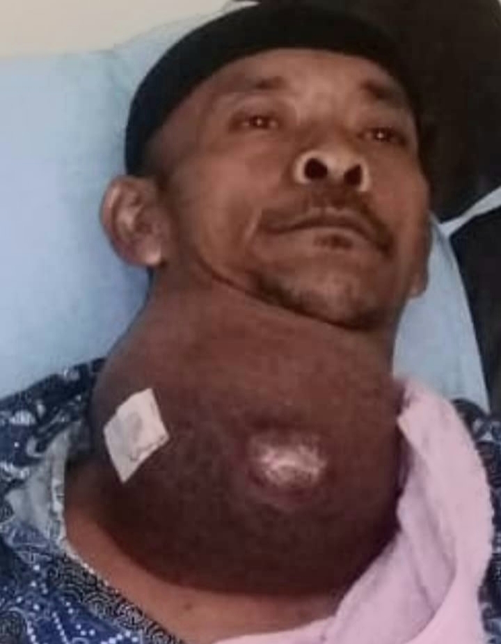 Sarjimin diduga menderita Thyroid Neoplasm Susp Malignant atau disebut juga tumor atau kanker kelenjar pada leher.