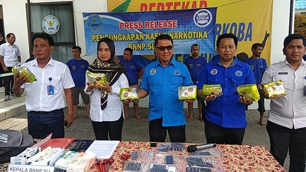 Pihak BNN menggelar temu pers pangkapan 8 kg sabu yang dikendalikan napi di LP Tanjung Gusta dan Simalungun.