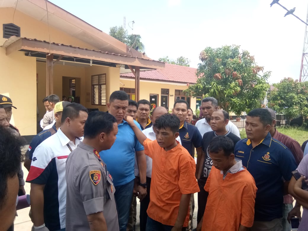 Kapolres Batubara AKBP Robin Simatupang SH MHum didampingi Kasat Reskrim Polres AKP Pandu Winata SH SIK MH dan Kapolsek Lima Puluh AKP Jhoni Andries Siregar pada press release di Sat Reskrim Polres Batubara di Lima Puluh, Senin (25/03/2019).