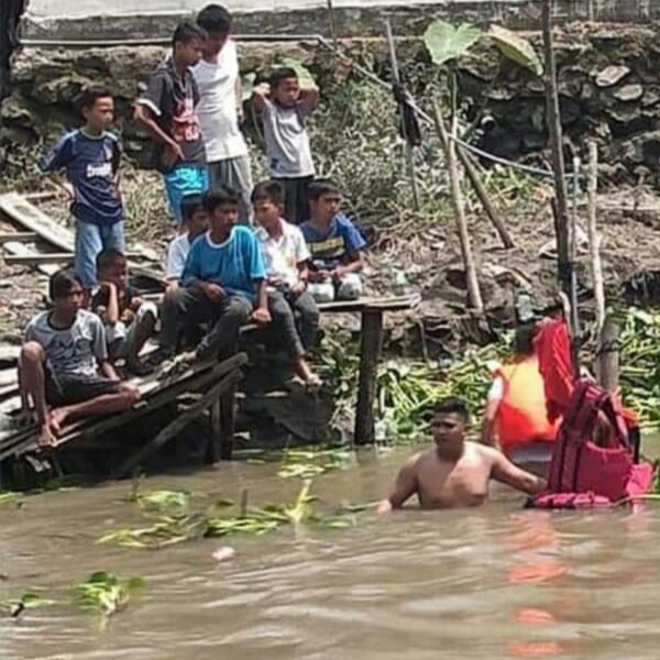 Awalnya temannya menduga korban bisa berenang, melihat korban meminta tolong teman korban bersama warga yang berada dilokasi langsung berenang ketitik lokasi jatuhnya korban melakukan pencarian.
