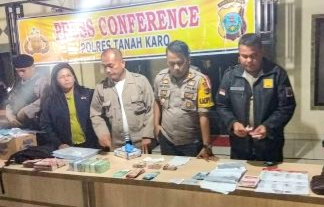 Kapolres Tanah Karo memperlihatkan barang bukti dalam konfrensi pers. |