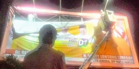Photo : Pembersihan alat peraga kampanye (APK) Pemilu Serentak 2019 di Labuhanbatu.