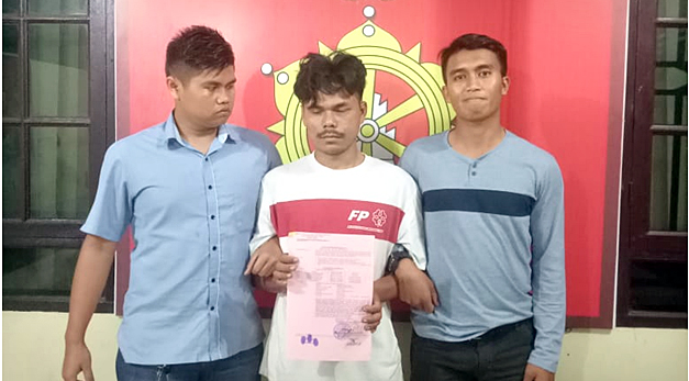 | Tersangka pemerkosa, Freddy Silalahi saat diamankan di Polres Dairi. |
