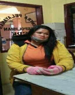 | Korban penganiayaan suami saat membuat pengaduan ke kantor polisi. |