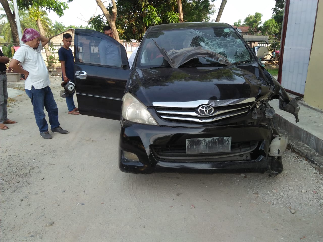 Menurut sejumlah saksi mata, saat tabrakan, mobil tersebut dikemudian oleh seorang oknum caleg DPRD Kota Tanjungbalai berinisial SD.
