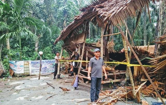 Kondisi gubuk pasca ditimpa pohon Aren. |