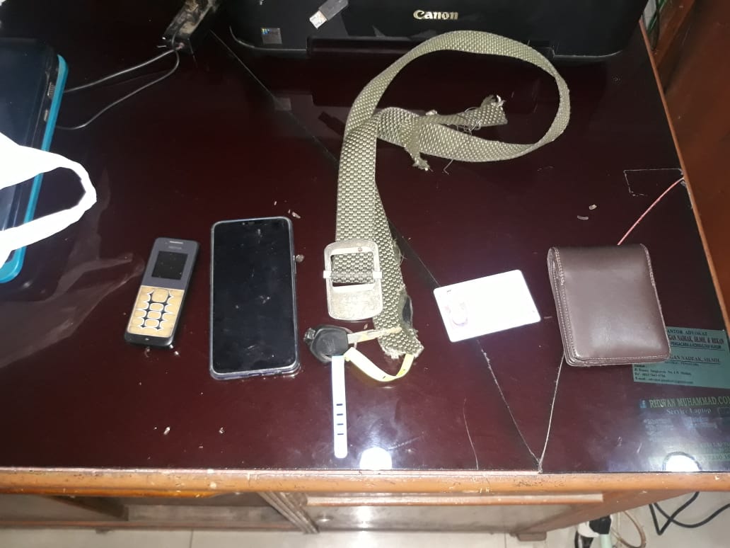 Saat Ade melihat ke kamar korban melalui jendela kamar, dia terkejut melihat Afrianto tergantung dengan leher terbelit tali pinggang yang ujungnya terikat pada plafon rumah.