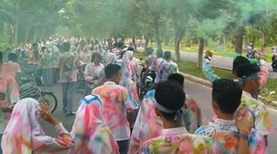 Aksi coret baju yang dilakukan para pelajar itu membuat kemacetan di badan jalan, sehingga mengganggu arus lalu lintas (lalin).
