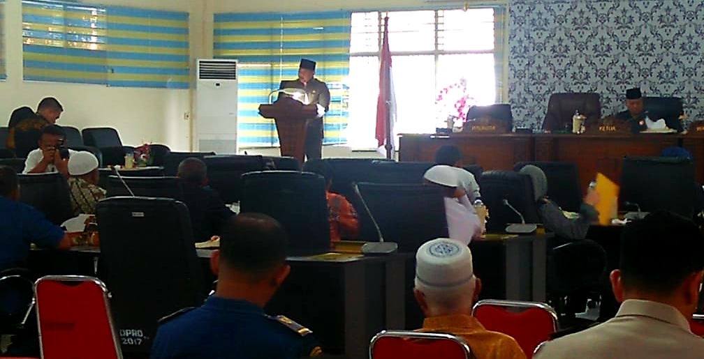 | Walikota Tanjungbalai membacakan jawaban atas pandangan umum fraksi DPRD dalam rangka penyampaian LKPJ) Walikota Tanjungbalai TA.2018. |