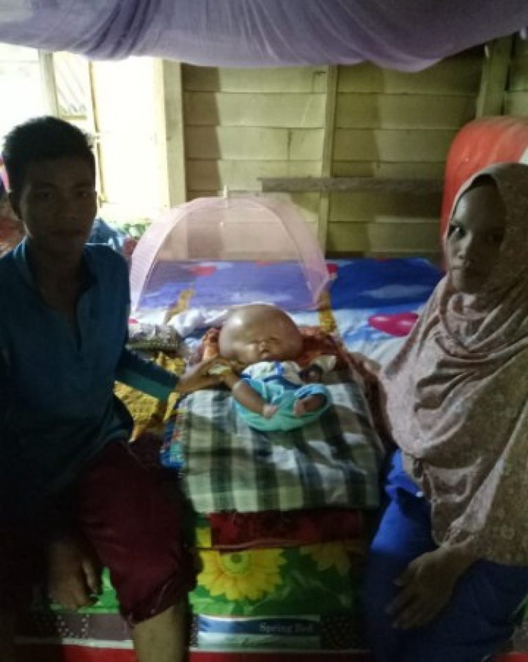 TASLABNEWS, ASAHAN-Edi Saputra (27) dan istrinya Indah Sari (20) warga Dusun 3 Desa Bangun Baru, Kecamatan Sei Payang, Kabupaten Asahan hanya bisa pasrah dengan kondisi anak mereka Rehan Saputra bayi berusia empat bulan yang menderita hidrosefalus (pembengkakan kepala).
