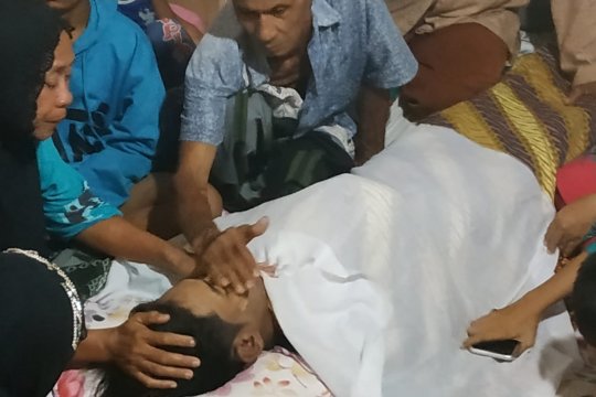 Jenazah korban disambar petir saat disemayamkan di rumah duka. |