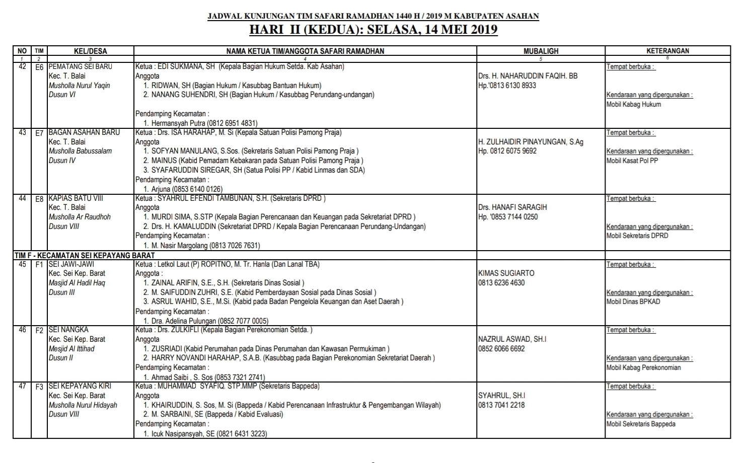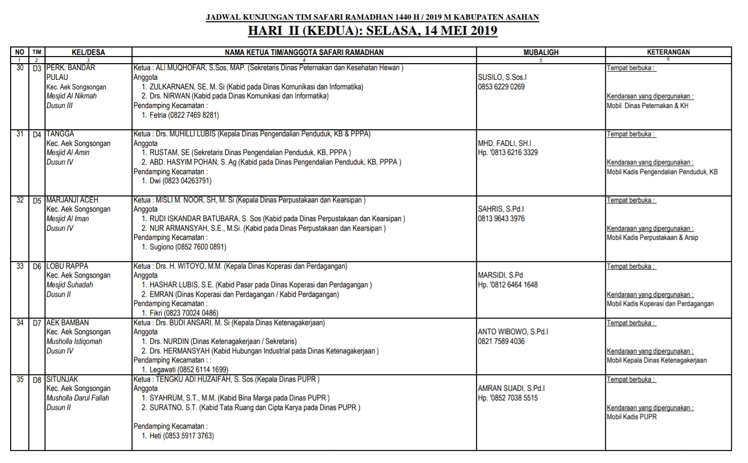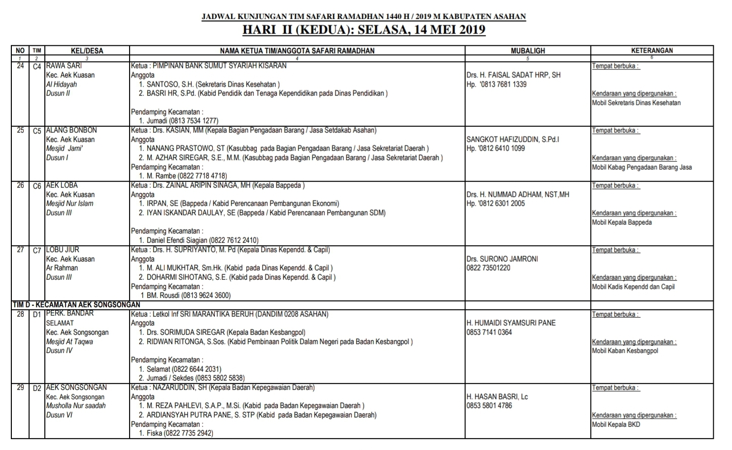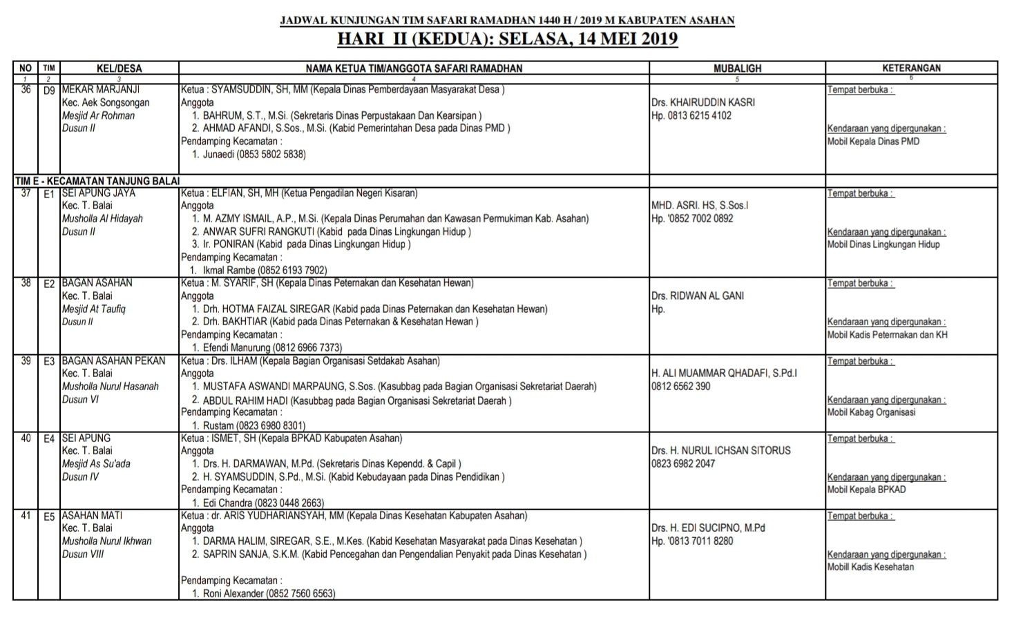 TASLABNEWS, ASAHAN – Sebagai agenda rutin tahunan, Pemerintah Kabupaten Asahan mengadakan kegiatan Safari Ramadan yang berlangsung dari tanggal 13 Mei 2019 hingga 14 Mei 2019. Kemudian dilanjutkan pada tanggal 16 Mei 2019 hingga 17 Mei 2019.