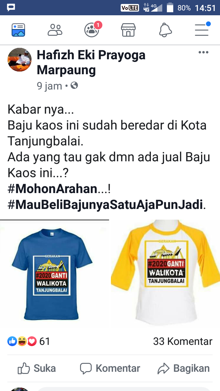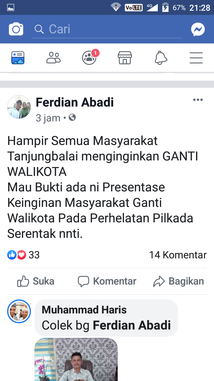 Dalam status di akun Facebook disebutkan warga sudah tidak percaya dengan kepemimpinan Walikota Tanjungbalai Syahrial Batubara.