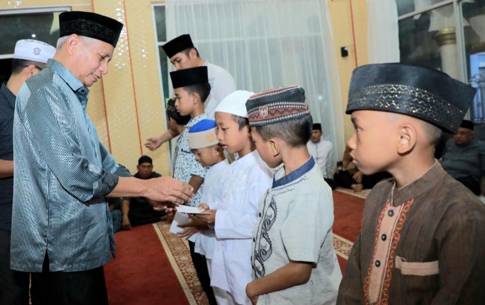 H Surya BSc menyerahkan bantuan kepada anak Yatim di Kecamatan Meranti. |