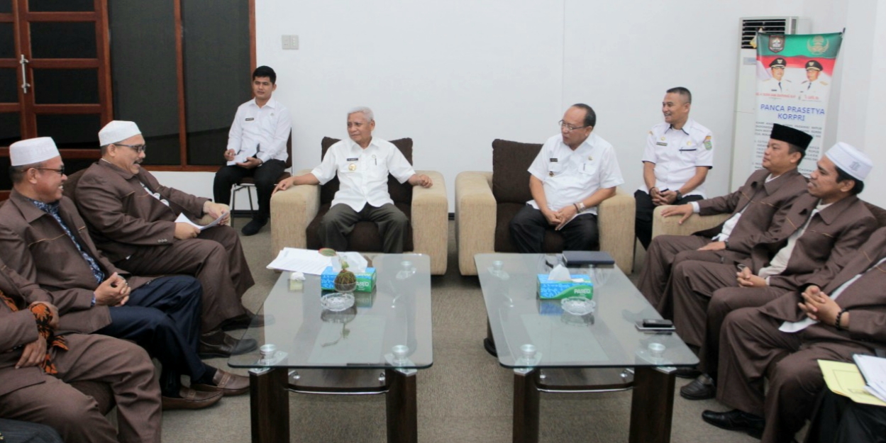 | Plt Bupati Asahan, H Surya BSc menerima audiensi para Pengurus Imtaq Kabupaten Asahan di ruang kerjanya. |
