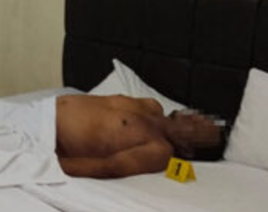 Jenazah korban saat ditemukan di kamar hotel Marina. |
