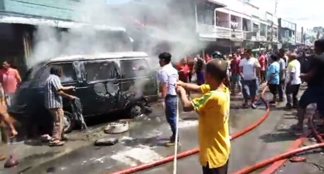 “Kebakaran dengan cepat merembes membakar 2 unit sepedamotor yang parkir di depan rumah milik Luhut Butar-Butar berikut mobil Grand Max miliknya, serta depan rumah milik tetangganya,” terang AKP Nelson.