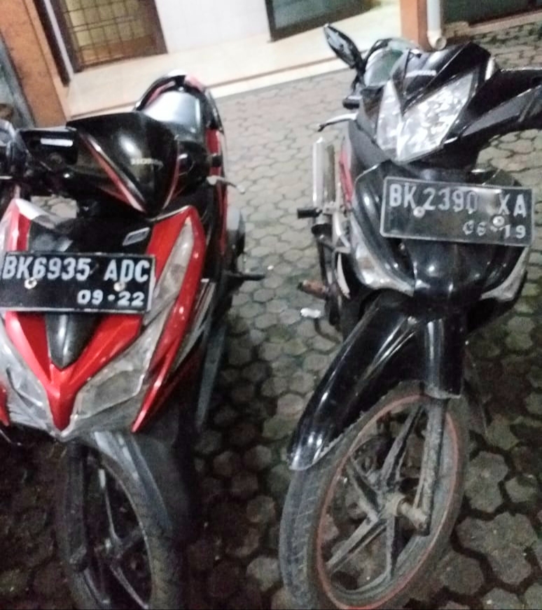 Dalam aksinya, Minggu (9/6/2019) sekira pukul 21.00 Wib, setelah membuka kunci stang sepedamotor yang diparkir teras rumah korban di Jalan A R Hakim Gang Rahayu No 9, Kelurahan Tegal Sari III, Medan Area, menggunakan kunci letter T, kedua pelaku mencoba membawa kabur sepedamotor tersebut.
