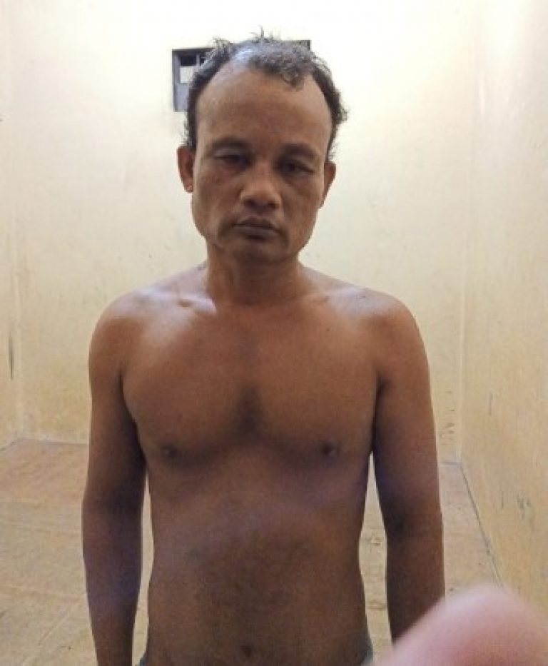 Tersangka diringkus Kanit Reskrim Polsek Kualuh Hilir Iptu M Samosir bersama warga di depan rumah tersangka, Minggu (16/6) sekira pukul 23.00 Wib.