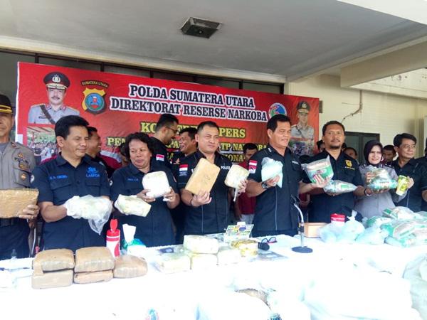TASLABNEWS, Sebanyak 50 kg sabu, 15.846 butir ekstasi dan 170 kg ganja berhasil diungkap Ditres Narkoba Polda Sumatera Utara.