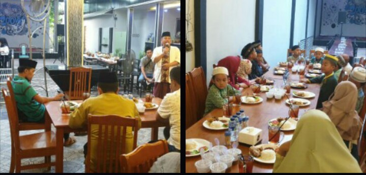 Usai buka puasa bersama, acara dilanjutkan dengan pemberian santunan kepada anak yatin yang diserahkan oleh perwakikan Plt Bupati Asahan Nirwan Pase, Iptu S Siahaan, al ustadz, Ketua PWI Asahan Indra Sikumbang, direktur PT Taslab Media Pers Salomo Malau, dan Pimred Taslabnews.com Syafruddin Yusuf. (Syaf)