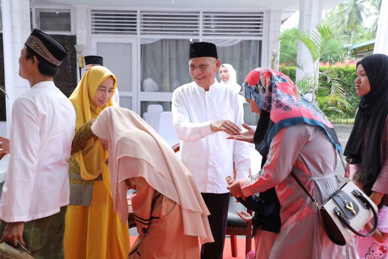Plt Bupati Asahan Surya menyambut kedatangan warga di acara Open House di Rumah Dinas Bupati Asahan |