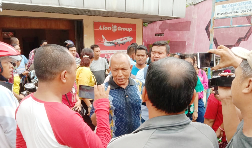 Pemilik Nitari Trevel, Borkat Pane (baju biru) saat memberikan penjelasan kepada warga. |