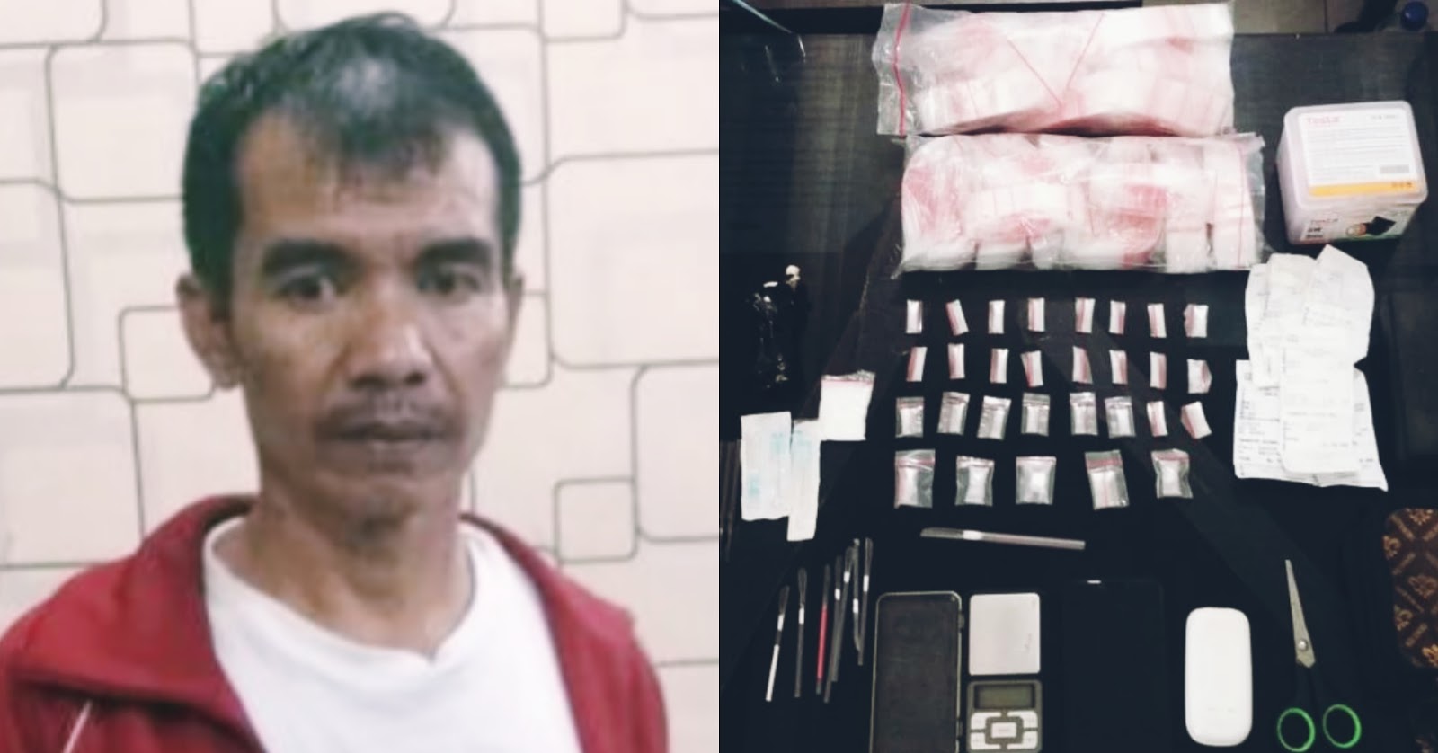 Tersangka Bambang Hermantoni dan barang bukti sabu diamankan di Polres Asahan. |