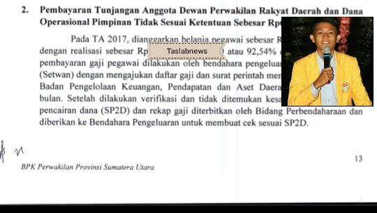 TASLABNEWS, TANJUNGBALAI-Biaya tunjangan anggota DPRD Kota Tanjungbalai dan biaya operasional Ketua DPRD tak sesuai ketentuan Rp200 juta lebih dan jadi temuan Badan Pemeriksa Keuangan (BPK) RI Cabang Sumut.