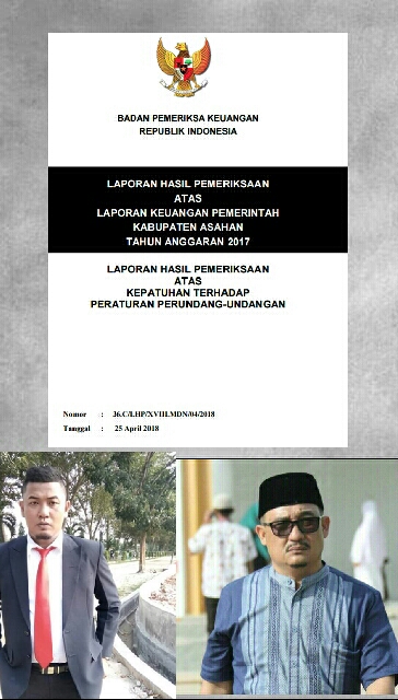 Salinan buku audit BPK, insert Soleh Marpaung dan Kabid Pemberitaan Infokom Asahan Arbin Tanjung. |