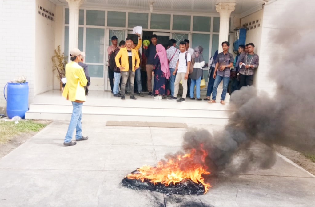 | Mahasiswa UNA saat enggelar aksi. |
